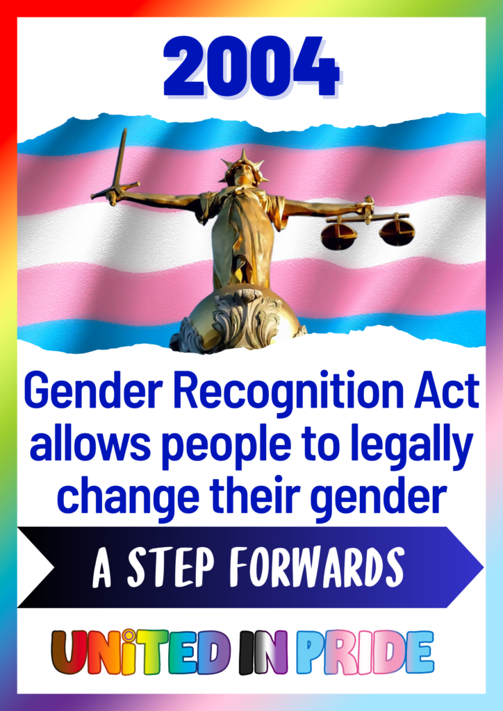 2004 Gender Recognition Act . The Gender Recognition Act 2004 (GRA) was a landmark piece of UK legislation that enabled transgender adults