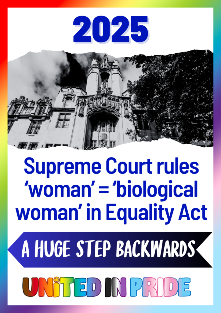 2025 Supreme Court rules woman = biological woman in the Equality Act. On 16 April 2025, the UK Supreme Court delivered