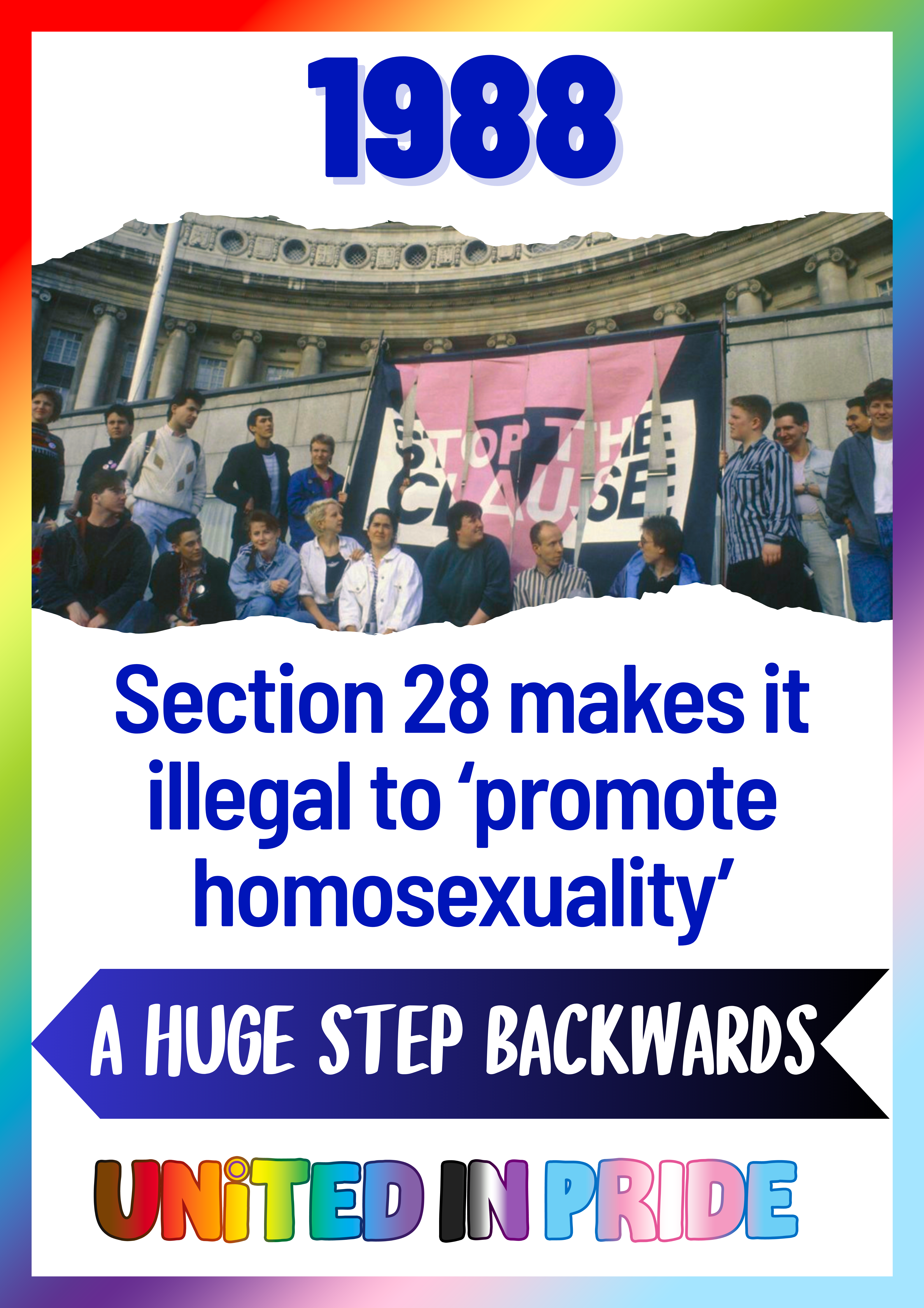 Section 28 of the Local Government Act 1988 was a controversial British law that prohibited local authorities from “intentionally promoting homosexuality”. Enacted on May 24, 1988, under Prime Minister Margaret Thatcher, it remained in effect for 15 years before being fully repealed in 2003.
