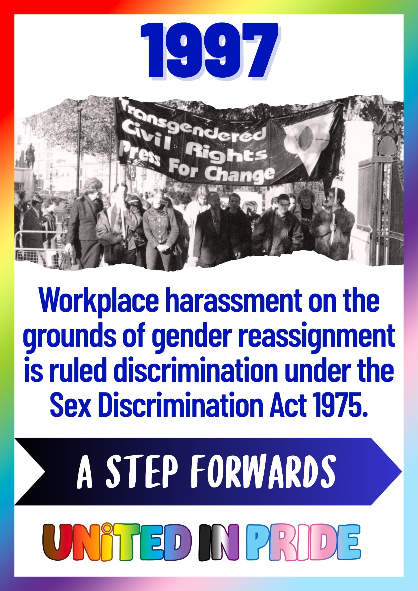 In 1997, transgender rights saw significant legal and social milestones globally, particularly in the United Kingdom, where landmark court rulings began to establish workplace protections.