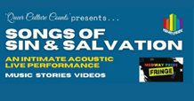 Two gay men bring their voices to songs that tell stories about loving other men. Gary B Lucas and Martin Adams will give an intimate acoustic music performance, interspersed with narratives and readings. This will be followed by music videos embracing queer culture as a backdrop.
